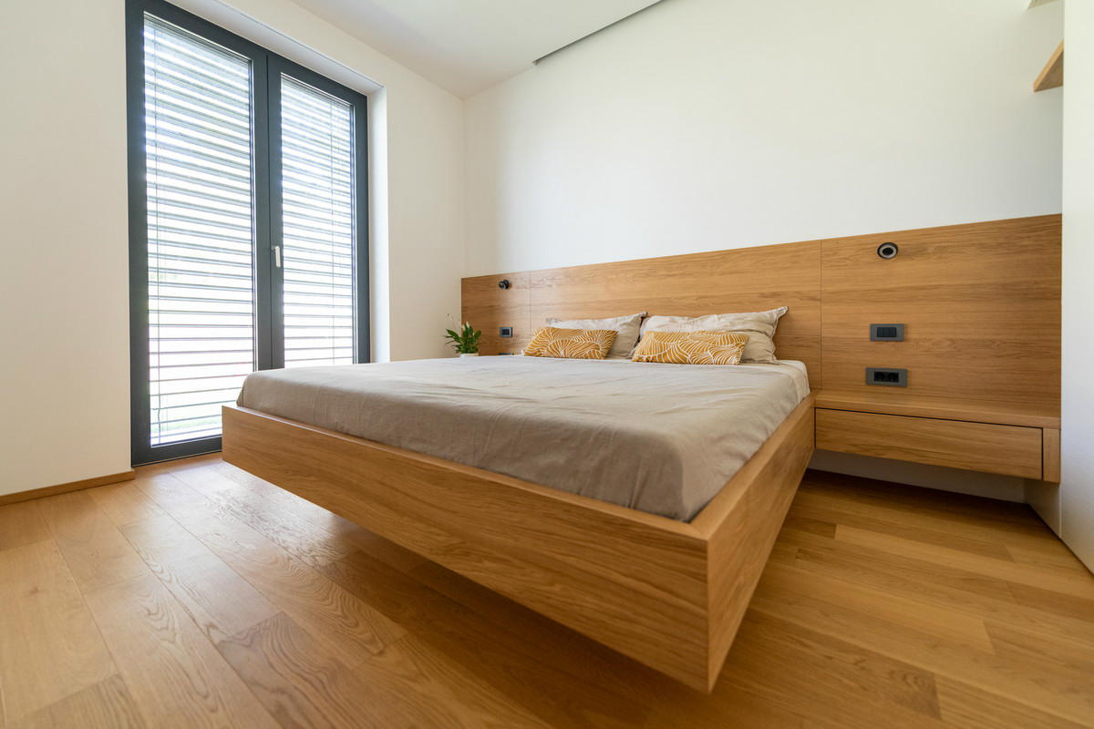 Our company has manufactured and fully equipped a family house with custom-made furniture, characterized by organic colors and the harmony of various textures, shapes and materials. Built-in lighting complements the furniture.